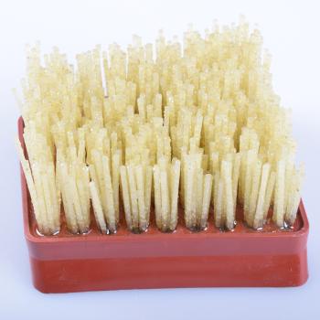 Diese einzigartige Satinierbürste mit durchdiamantierten Fäden erzeugt eine fein strukturierte Oberfläche. Die groben Körnungen erzeugen eine leicht angeraute Oberfläche, die feinen Körnungen dienen der Herausstellung von Farbe und Struktur. Sie kann direkt ohne Vorbehandlung auf geschnittenen Kanten und Flächen eingesetzt werden. Ideal ist ein Vorschliff mit mineralischem Stein Korn 120.